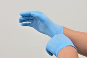 - 手袋の上からアルコールによる除菌
