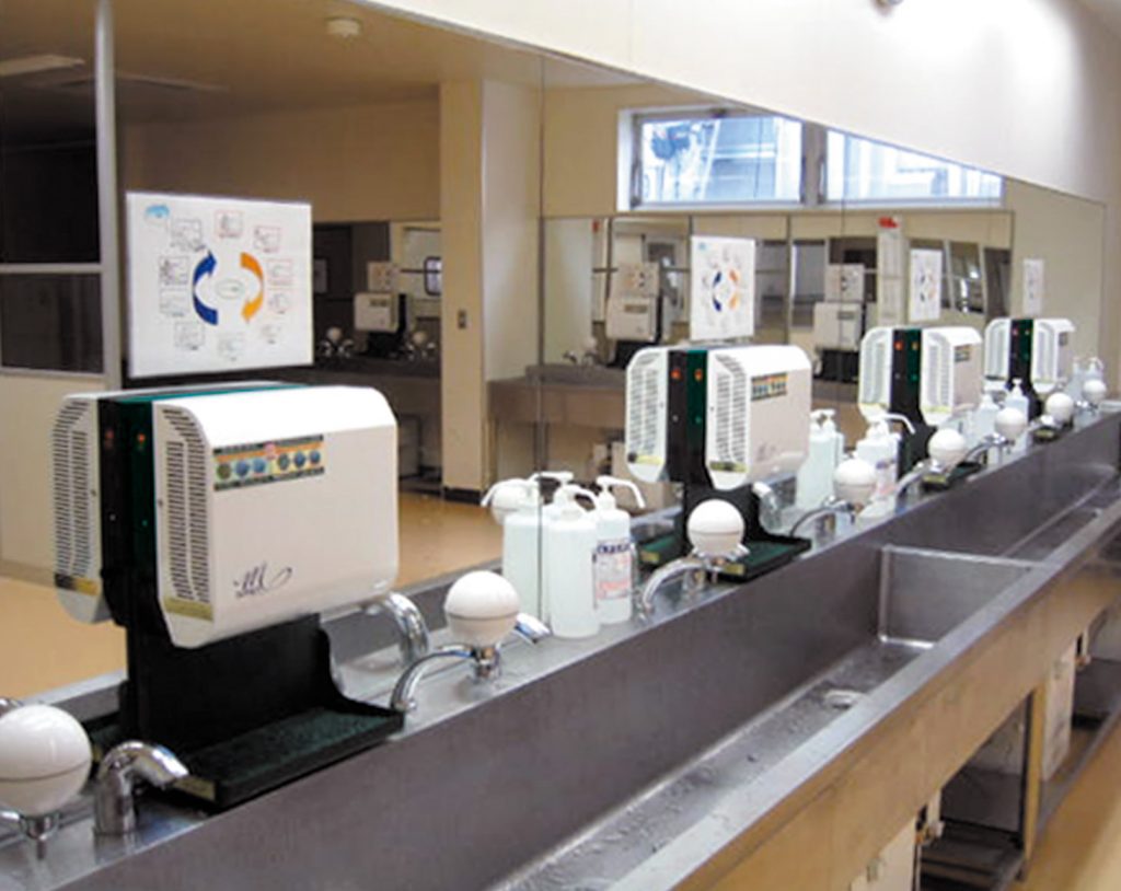 食品工場において、手洗いは非常に重要な工程ですが、