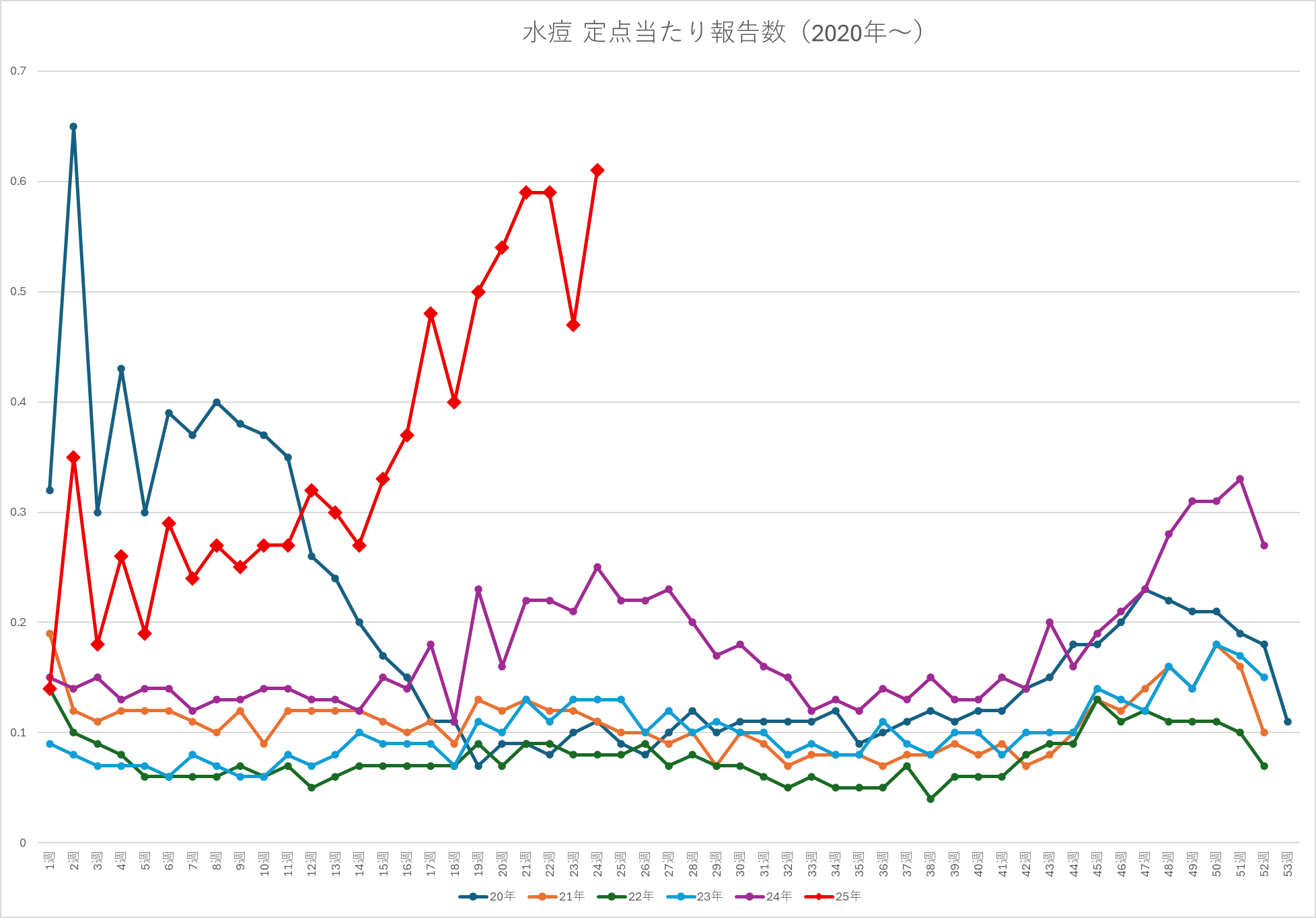 2025年6月時点で、水痘(水ぼうそう)の報告数が全国的に増加しています。
